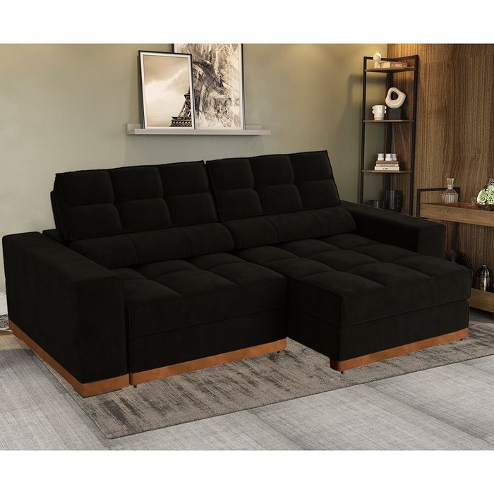 Sofá Retrátil e Reclinável Nepal com 6 Niveis de Reclinagem 3 Lugares Kappesberg Preto