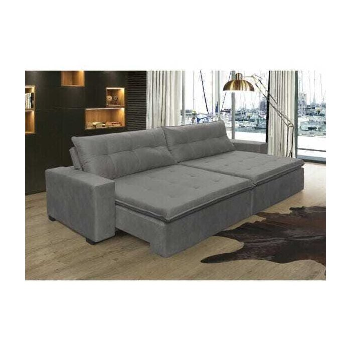 Sofá Retrátil e Reclinável Oklahoma 2,12M com Molas e Pillow No Assento Tecido Suede Cinza