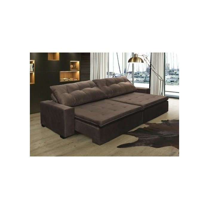 Procurando novidade e sofisticação em um estofado? Conheça o Sofá Oklahoma. Este estofado possui 2,02m de comprimento e aberto pode ser uma cama. Seu revestimento é em tecido Suede, seus assentos possuem molas bonnel, seus encostos são em fibra de silicone macios como um travesseiro. Tudo isso faz deste produto sinônimo de sofisticação e extremo conforto. Seu design com encosto reclinável e assentos retráteis tornam este produto muito espaçoso para você e sua família! "Desfrutar de um bom filme em sua sala não será mais como antes"