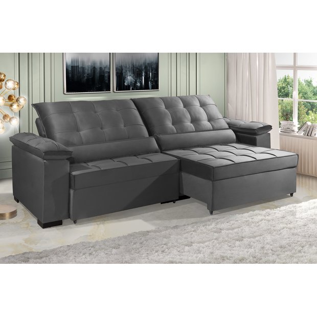 Sofá Retrátil e Reclinável Renew 2.10m Estilo Estofados - França Velusoft Cor "cinza" Cinza
