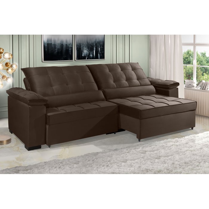 Sofá Retrátil e Reclinável Renew 2.70m Estilo Estofados - França Velusoft Cor "marrom"