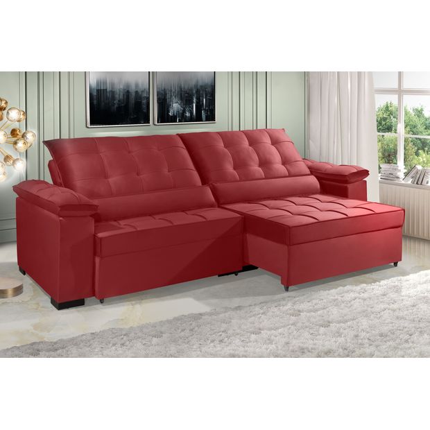 Sofá Retrátil e Reclinável Renew 2.90m Estilo Estofados - França Velusoft Cor "vermelho" Vermelho