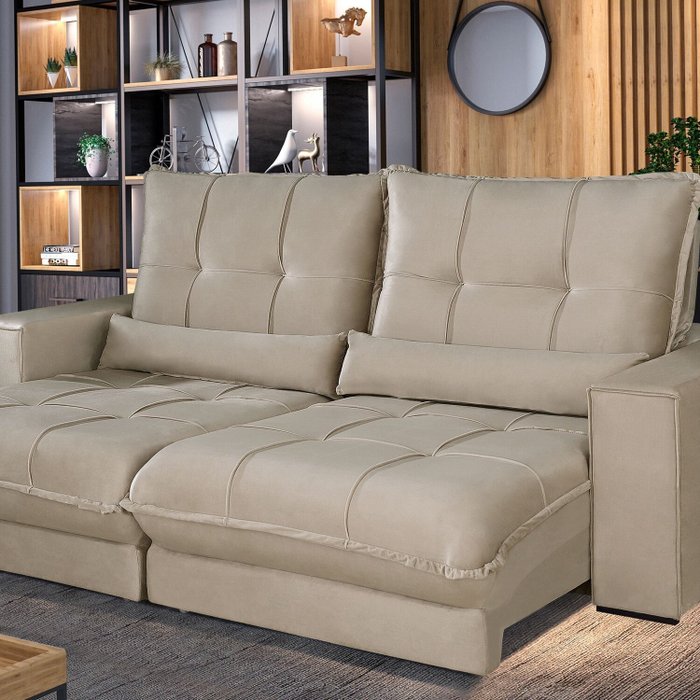 Sofá Retrátil e Reclinável Thor - Molas Ensacadas 2.30 Mts Bege Castor