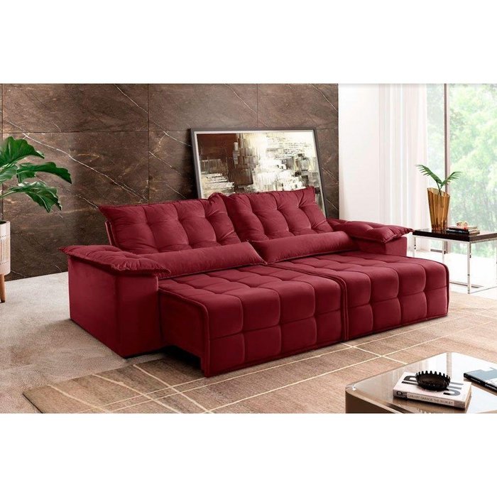 Sofá Retrátil E Reclinável Zeus 2,10m 03 Lugares Txr Bordô Bordô