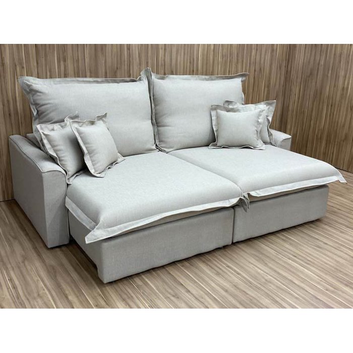 - Linho: tecido requintado, resistente, que não facilita o acúmulo de poeira. Além do mais, tem boa durabilidade, assim, o seu sofá retrátil fica com a aparência de novo por muito mais tempo. Como desvantagem, para quem tem animais de estimação pode acumular pelos.