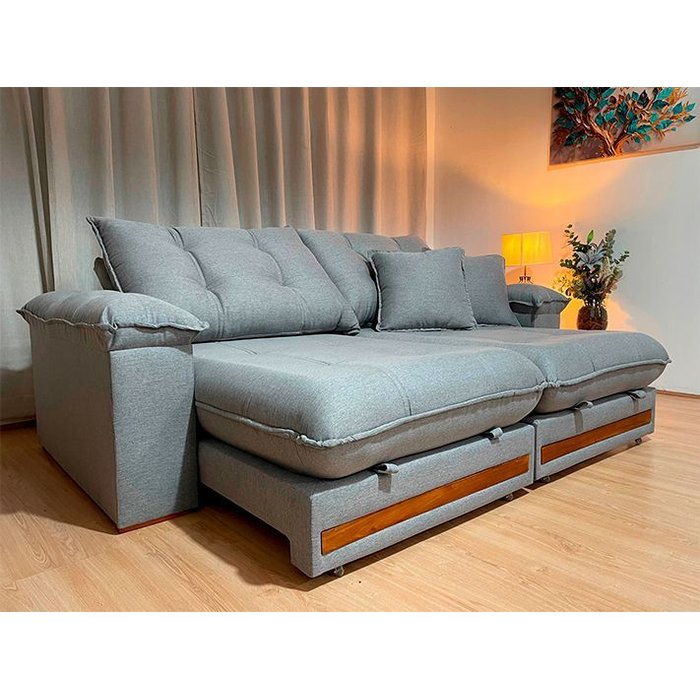 Sofá Retrátil Reclinável 2,50 m Linho Cinza A230 Gael