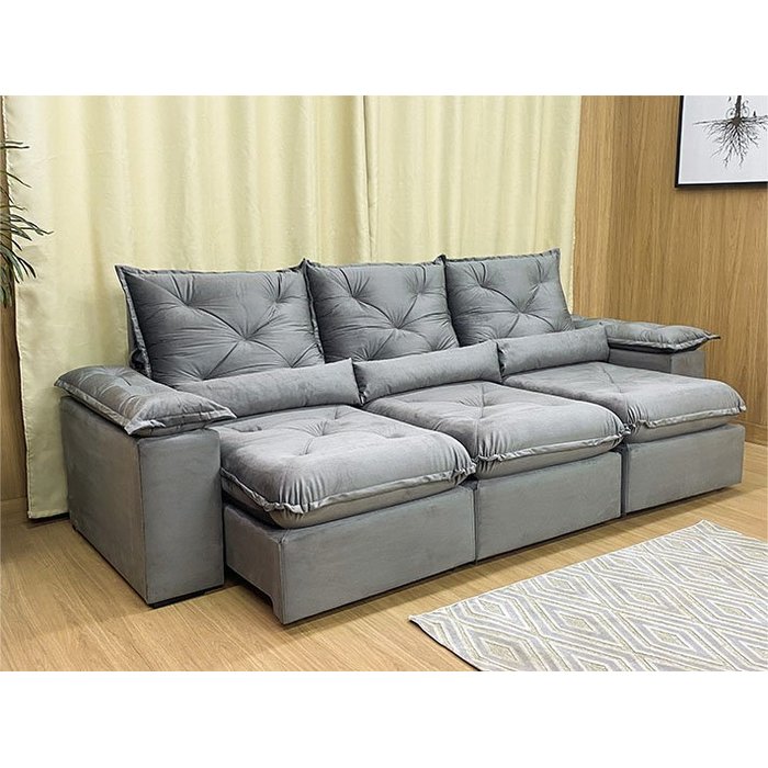 Sofá Retrátil Reclinável 2,70 m Cinza 502 Zuqui plus