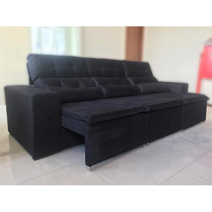 Sofá Retrátil Reclinável 2,70 m Preto 204 Zeus