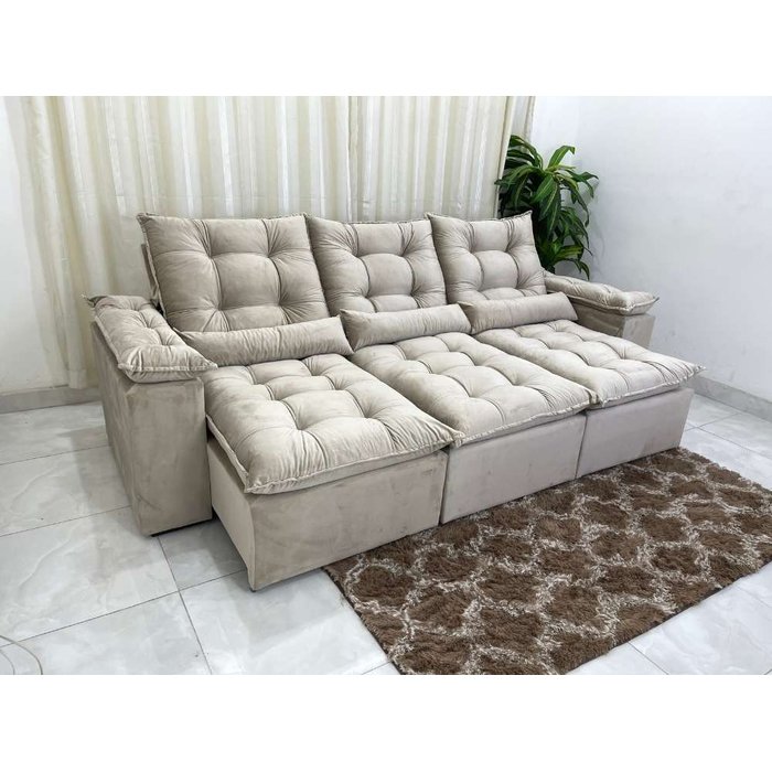 Sofá Retrátil Reclinável 2.70m Atenas - Bege Veludo
