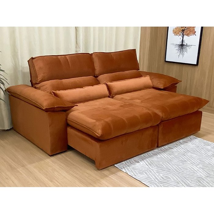 Nosso Novo Sofá Retrátil Reclinável Vergas Plus Terracota é um produto unico, com design moderno e elegante que combina com qualquer ambiente e deixa sua sala ainda mais linda e confortavel e aconchegante.