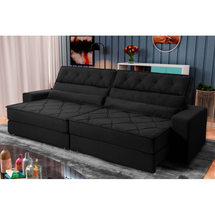 Sofá Retrátil Reclinável 230cm Albany Suede Velut com Molas Ensacadas - King House Preto