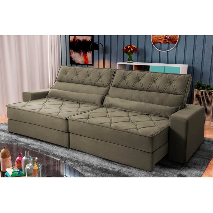 Sofá Retrátil Reclinável 250cm Albany Suede Velut com Molas Ensacadas - King House