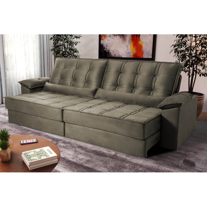 Ver imagem 4 de Sofá Retrátil Reclinável 250cm Ascari Suede Velut com molas Ensacadas - King House