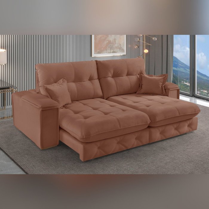 Sofá Retrátil Reclinável 250cm Istambul Yescasa Marrom Claro