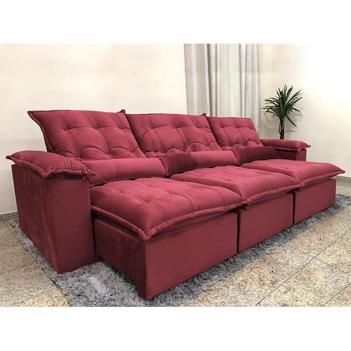 Sofá Retrátil Reclinável 3,20 m Vinho 323 Maricá