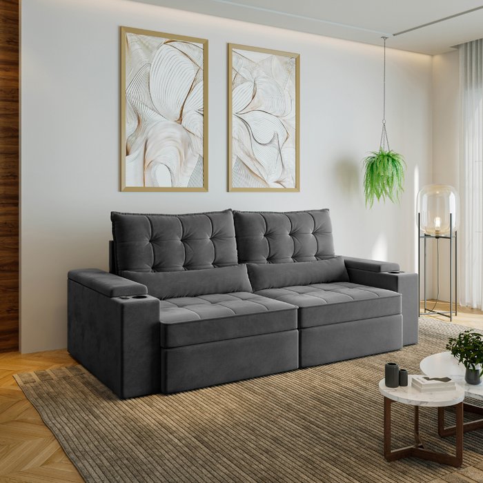 Sofá Retrátil Reclinável 4 Lugares 240cm Porta Copos e USB Embaúba Extra CabeCasa MadeiraOriginals
