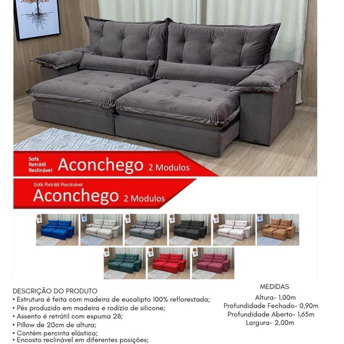 O Sofá Aconchego é a escolha perfeita para quem busca conforto, estilo e funcionalidade. Com um design elegante e materiais de alta qualidade, ele transforma qualquer ambiente, proporcionando momentos de descanso e bem-estar.