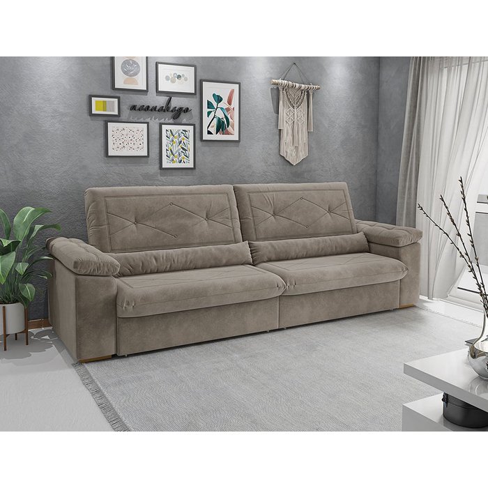 Sofá Retrátil Reclinável Alana Castor 2L 2,96m