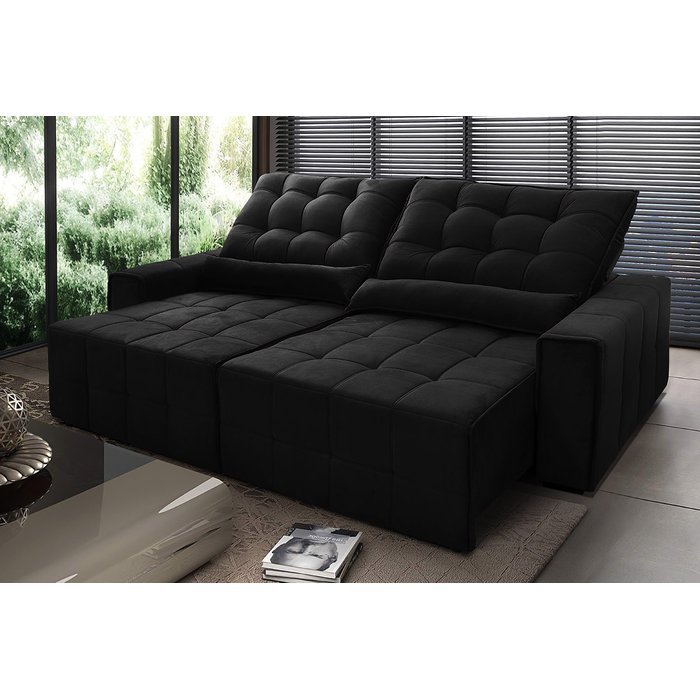 Ele possui encosto reclinável em cinco posições, proporcionando-lhe mais conforto na hora do descanso. Não para por aí: seu assento retrátil conta com espuma D35 e molas espirais, transformando seu sofá em uma verdadeira cama para assistir seu filme preferido.