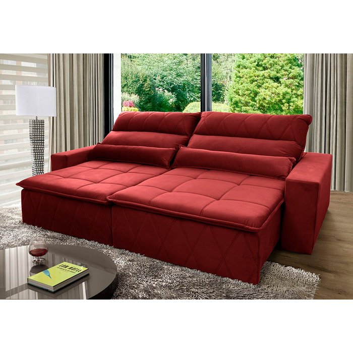Ele possui encosto reclinável em cinco posições, proporcionando-lhe mais conforto na hora do descanso. Não para por aí: seu assento retrátil conta com espuma D33 e molas espirais, transformando seu sofá em uma verdadeira cama para assistir seu filme preferido.
