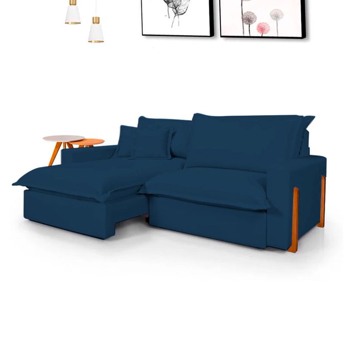 Sofá Retrátil Reclinável Davi com Molas Ensacadas no Assento Tecido Azul Marinho 1,90m