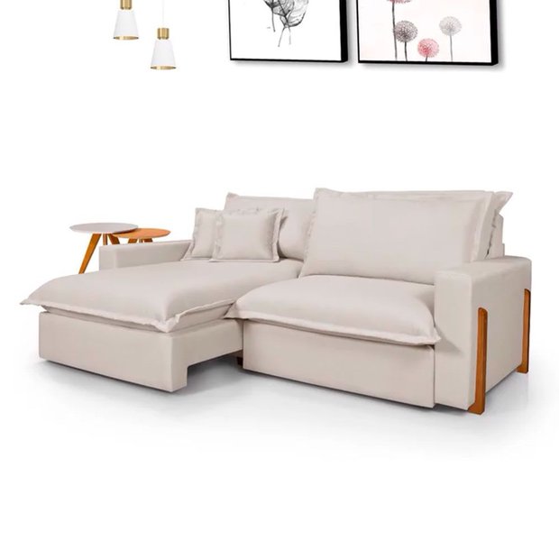 Sofá Retrátil Reclinável Davi com Molas Ensacadas no Assento Tecido Linho Cru 2,50m BEGE