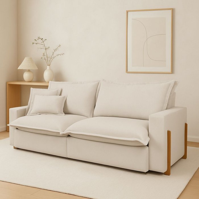 Transforme seu ambiente com o Sofá Davi Original, uma criação da Móveis Hórus: 2,00m de puro conforto com molas ensacadas no assento e encosto, tecido linho cru e sistema retrátil e reclinável. Durabilidade garantida para anos de uso.