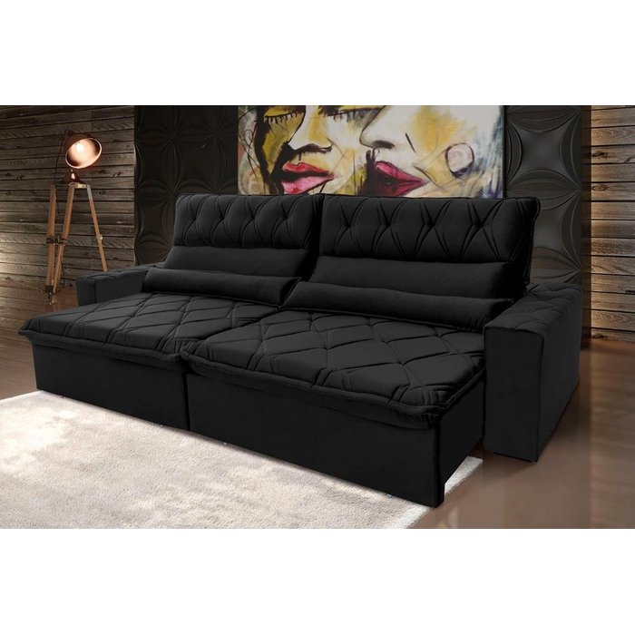 Sofá Retrátil/reclinável França 230cm Suede Velut com Molas no Assento - King House Preto