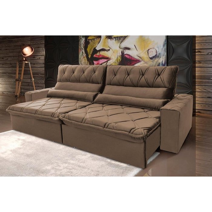 Sofá Retrátil/reclinável França 230cm Suede Velut com Molas no Assento - King House