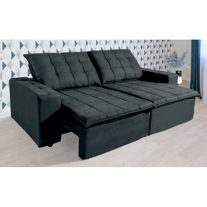 Sofá Retrátil Reclinável Frost 2,25m Assento Pillow Top Suede Tupaflex Preto