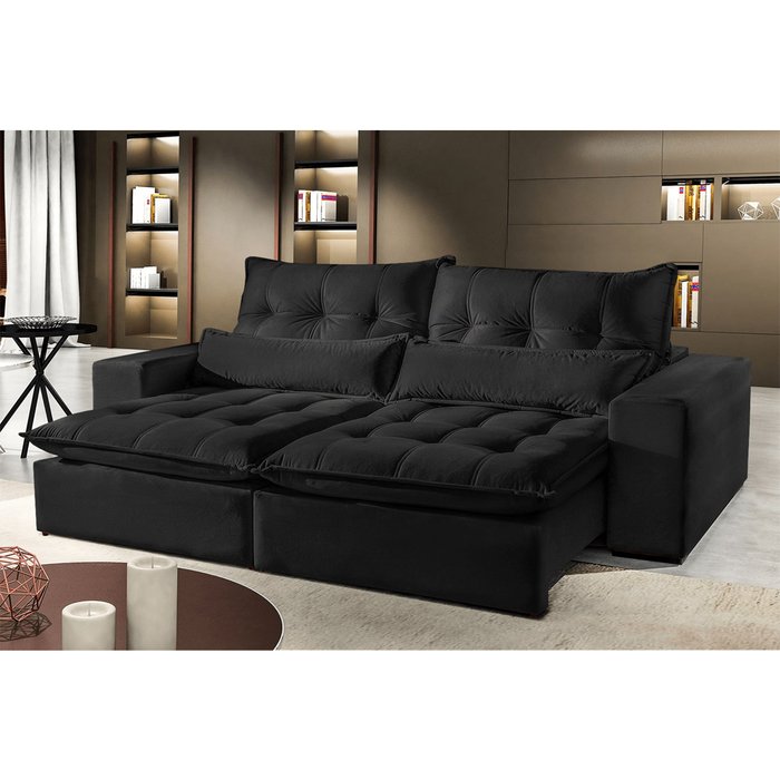 SOFÁ RETRÁTIL RECLINÁVEL MÁXIMO ALTO PADRÃO PRETO 2,50m