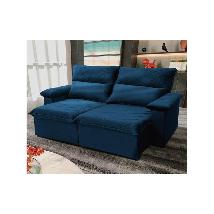 Sofá Retrátil Reclinável Paris 200cm Suede Velut com Molas no Assento - King House Azul Marinho