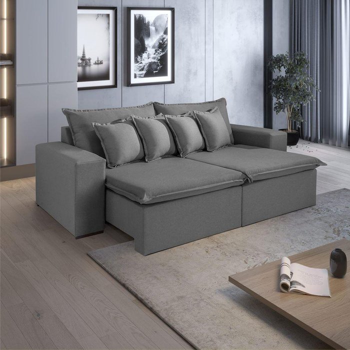Sofá Retrátil Topázio 1,80m Cor Cinza Cinza