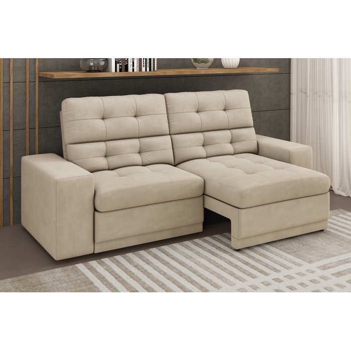 Sofá Roma Premium 1,70m Assento Retrátil/Reclinável Suede Capuccino XFlex Sofás