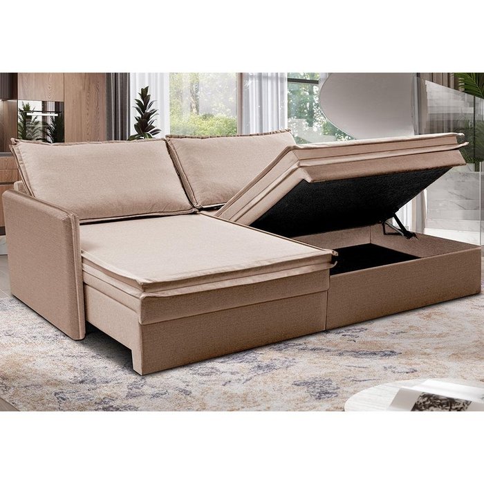 Sofá sem Caixa Retrátil Baú 1,55m Lounge Linho Bege Escuro Cama inbox