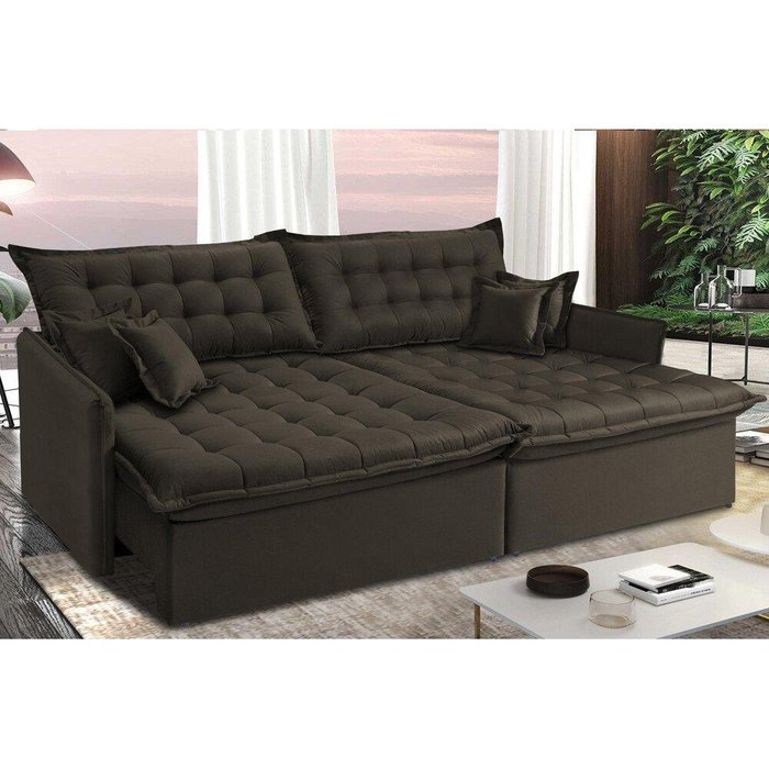 Sofá Sem Caixa Retrátil e Reclinável 1,95m Cama inBox Versátil Suede Velusoft Café