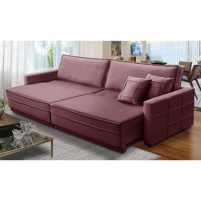 A combinação perfeita de beleza, praticidade e conforto.O novo Sofá cama Karen é perifeito para ter em casa, com um design modermo ele vai agregar alto valor ao seu ambiente, deixando-o muito mais bonito, elegante além de proporcionar um conforto surreal.A opção dele virar cama é perfeita para quando precisar acomodar algum amigo ou parente quado vierem te visitar. Medidas do Produto Montado:- Largura: 2,30m- Altura: 1,00m- Profundidade: 1,00m- Profundidade de Assento: 0,45cm- Largura de Assento: 2,15m- Braço: 0,10cm- Profundidade total aberto: 1,35m- Profundidade de Assento (Cama): 1,20m- Chão ao Assento: 0,47cm Especificações Técnicas:Encosto: Composto de Almofadas preenchidas de 80% fibra e 20% flocos, para proporcionar maciez e qualidade.Assento: Composto de espuma D-28 além de possuir Molas Bonel e percintas elásticas de 5mm que são esticadas por uma máquina que garante a melhor qualidade possível para o conforto e durabilidade.Estrutura: Sua estrutura é composta por madeira de eucalipto 100% reflorestada, ela é fixada por grampos galvanizados que vão fazer todo o trabalho de manter uma estrutura firme com alta qualidade e durabilidade. Informações relevantes:- Esse produto suporta de 130 a 150kg por assento. *Este produto vai embalado em 2 Volumes. Garantia 90 dias após o recebimento do produto. Instruções de limpeza: Utilizar um pano limpo e seco. Não limpe com escovas ou produtos abrasivos.Observações importantes:- As imagens são meramente ilustrativas, não acompanham objetos de decoração e eletros;- As cores dos produtos podem sofrer alterações dependendo do seu monitor ou lote do tecido.- Todos os produtos vão embalados com total segurança;- Confira a embalagem e o poduto no ato da entrega, caso o produto esteja em desacordo recuse imediatamente.- Não nos responsabilizamos no ato de entrega por montagens, desmontagens, instalações de produtos, nem uso de guinchos ou equipamentos para acesso a pisos superiores em apartamentos.- Confira as dimensões do produto no momento da compra e certifique-se de que passará por escadas, elevadores, portas normais e corredores. Observando as orientações acima, evita-se futuros desagrados ou imprevistos com a entrega do produto.CASO TENHA, A MONTAGEM DO PRODUTO É DE RESPONSABILIDADE DO COMPRADOR, NÃO EFETUAMOS A MONTAGEM DO PRODUTO.*As transportadoras NÃO SOBEM escadas, elevadores e não adentram residências*- A entrega será feita até a porta ou portaria do endereço no qual o pedido foi feito, qualquer necessidade de movimentação do produto até o local onde ele será utilizado é de inteira responsabilidade do CLIENTE, caso haja algum dano ou qualquer coisa do tipo no produto durante a movimentação NÃO NOS RESPONSABILIZAMOS.