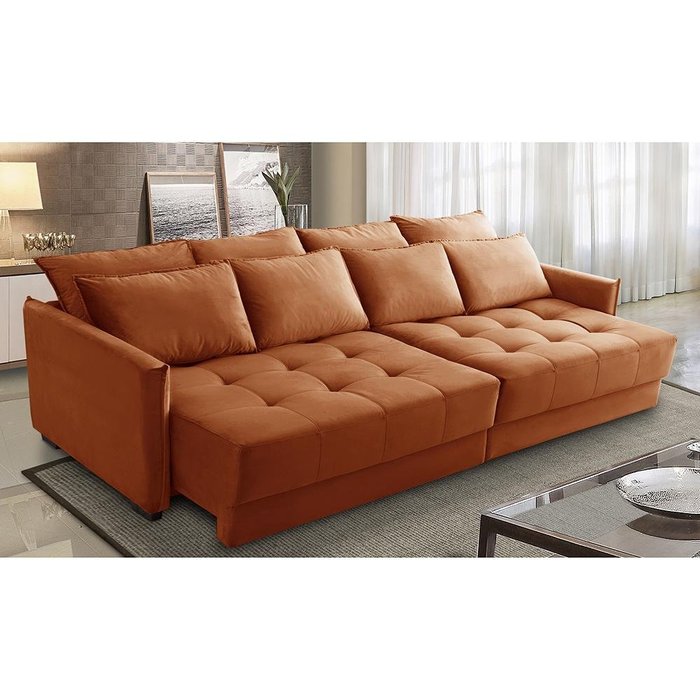 Sofá Sem Caixa Retrátil Reclinável 2,50m Carol Veludo Terracota Adonai Estofados Terracota