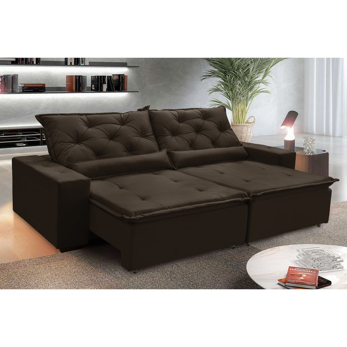 Sofá Sevilha 2,32 m Retrátil, Reclinável SUEDE Marrom