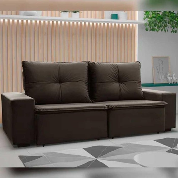 Sofá Simbal San Francisco 3 Lugares Veludo Marrom Darom Moveis Marrom