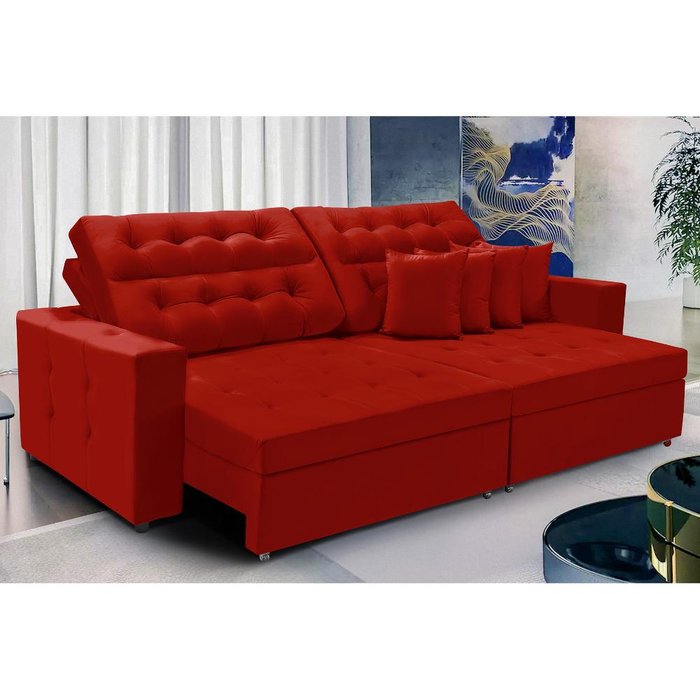 Sofá Texas 2.60m Retrátil e Reclinável - Vermelho