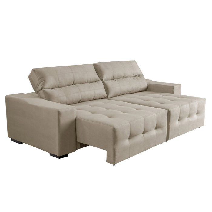 Sofá Top Lubeck 3 Lugares Retrátil e Reclinável 2,00m Suede Bege - Premium Box
