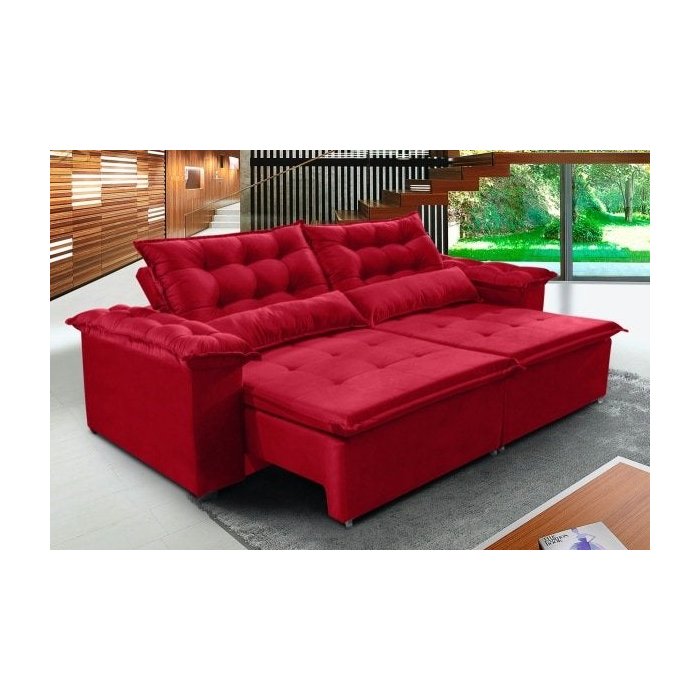 Sofá Veneza 2,90M Retrátil com Molas Vermelho