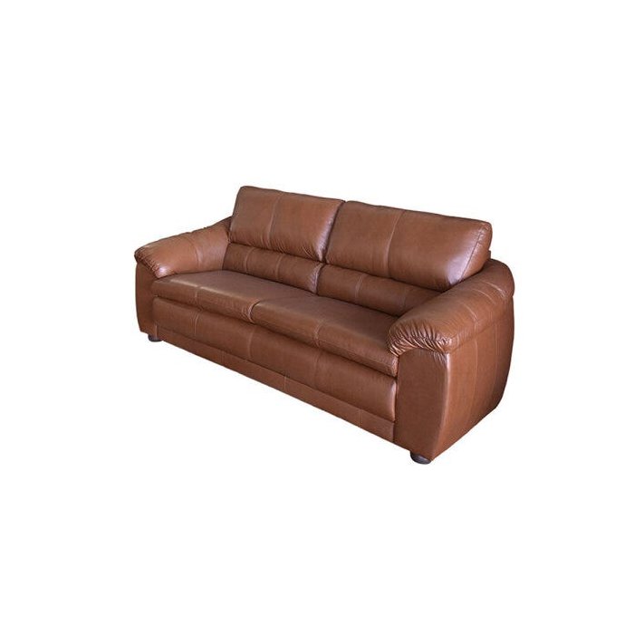 Sofá Veneza 3 Lugares Couro Conhaque A110 2,10M Pés de Madeira - D'Rossi