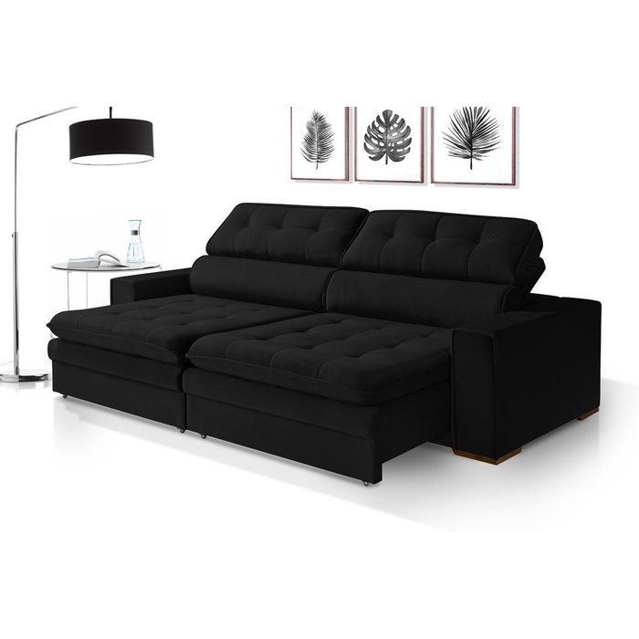 Sofá Versato Retrátil e Reclinável 2 Módulos Premium Veludo Preto 2,50m