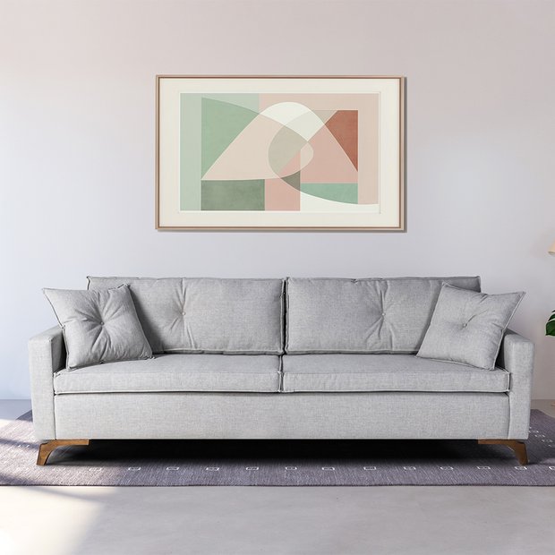 Sofá Viena 2,30m Tecido Linho Pés Imbuia Cinza