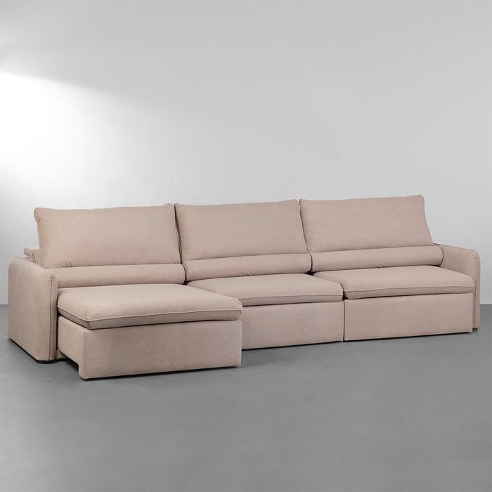 Sofá Week Retrátil Modular Areia Botonê - 2,96m Abra Casa Areia