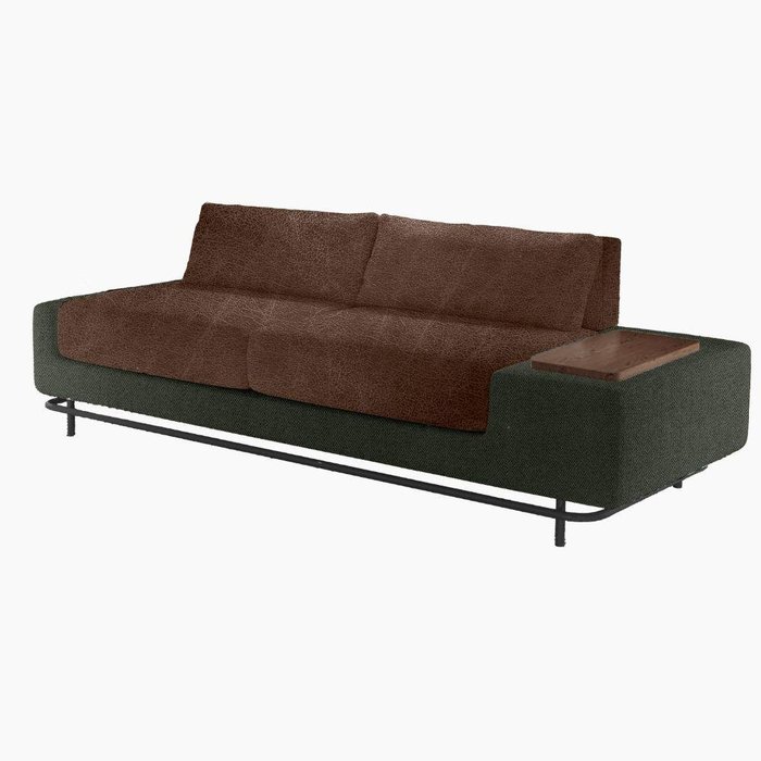 Sofá Zeit 4 Lugares Couro Marrom e Boucle Verde 1,90m Marrom
