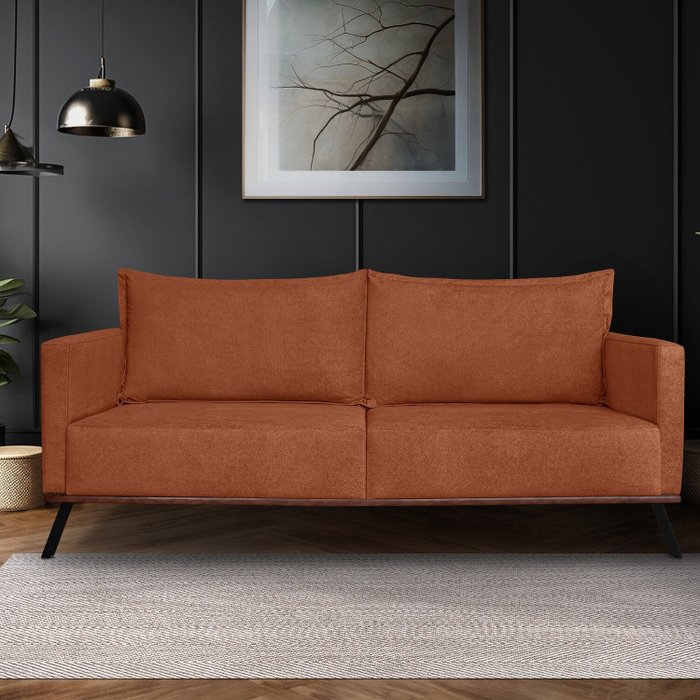 Sofá Zeki 3 Lugares 220 Cm Linho Boucle Cobre