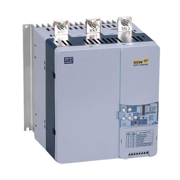 Soft-Starter WEG são chaves de partida estática, destinadas à aceleração, desaceleração e proteção de motores de indução trifásicos. O controle da tensão aplicada ao motor, mediante o ajuste do ângulo de disparo dos tiristores, permite obter partidas e paradas suaves.